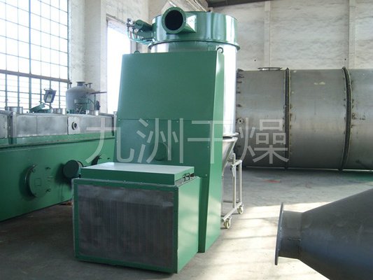 空气经加热净化后,由引风机从下部导入,穿过料斗的孔网板。在工作室内,经搅拌和负压作用形成流态化,水份快速蒸发后随着排气带走,物料快速干燥。