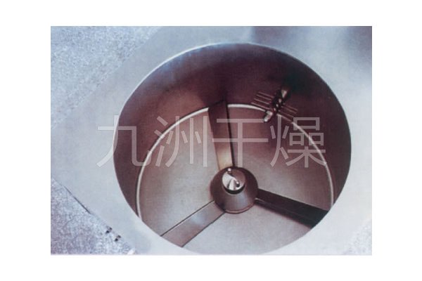 粉体物料与粘合剂在圆筒形容器中由底部混合浆充分混合成湿润软材,然后由侧置的高速粉碎桨切割成均匀的湿颗粒。