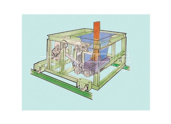 ◎槽形成型机: 由加料斗和刻有槽的二根辊子构成。以增大物料表面积的造粒为目的。物料被内侧运转的辊子吸入,被反转的外侧刮刀切成粒状。